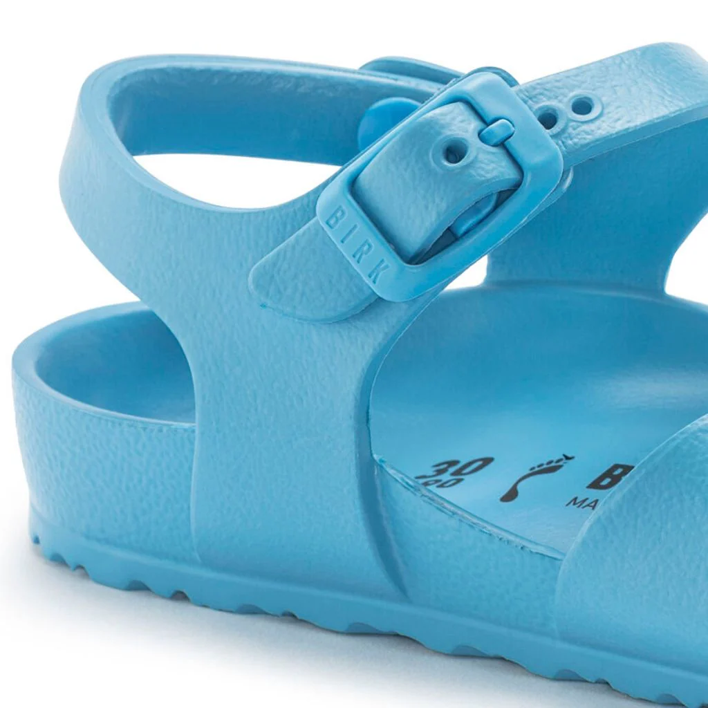 The BIRKENSTOCK Rio model is a classic kids’ shoe. Designed back in the 1970s, it has been a laid-back summer companion for generations of children ever since. BIRKENSTOCK has reinterpreted the Rio sandal in stylish neon colours and high-quality synthetic material. Modelled on the cork sandal, it is made from the ultra lightweight and highly flexible synthetic material EVA.